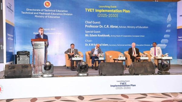 শিক্ষা উপদেষ্টা অধ্যাপক ড. সি আর আবরার বলেছেন, কারিগরি ও বৃত্তিমূলক শিক্ষা ও প্রশিক্ষণ (টিভিইটি) খাতকে বৈশ্বিক মানসম্পন্ন, অন্তর্ভুক্তিমূলক এবং অগ্রগামী কর্মশক্তি উন্নয়ন ব্যবস্থায় রূপান্তরের লক্ষ্যে ২০২৫ সালের টিভিইটি বাস্তবায়ন ...বিস্তারিত পড়ুন