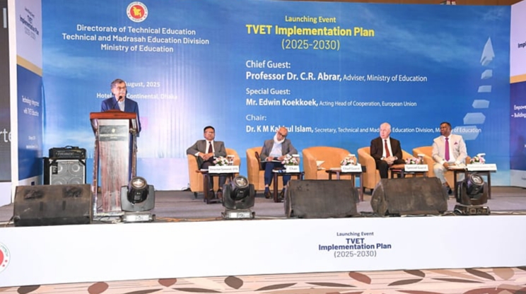 আজ রোববার রাজধানীর হোটেল ইন্টারকন্টিনেন্টালে কারিগরি শিক্ষা অধিদপ্তর, কারিগরি ও মাদ্রাসা শিক্ষা বিভাগ, শিক্ষা মন্ত্রণালয়ের আয়োজনে টিভিইটি বাস্তবায়ন পরিকল্পনা ২০২৫-২০৩০ উদ্বোধন অনুষ্ঠানে প্রধান অতিথির বক্তব্যে তিনি এসব কথা বলেন।