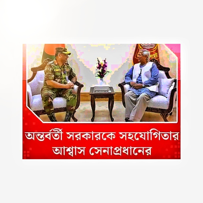 সেনাপ্রধান জেনারেল ওয়াকার-উজ-জামান প্রধান উপদেষ্টাকে অন্তর্বর্তী সরকারের প্রতি পূর্ণ সহযোগিতার আশ্বাস দেন। একই সঙ্গে তিনি গুজবের প্রতি মনোযোগ না দেওয়ার আহ্বান জানিয়ে বলেন, ‘পুরো সেনাবাহিনী সরকারের সব উদ্যোগ ও কর্মসূচি সফল করতে প্রতিশ্রুতিবদ্ধ।