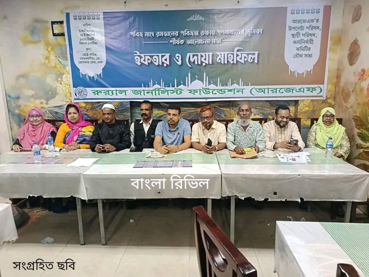 রুর্যাল জার্নালিস্ট ফাউন্ডেশন (আরজেএফ)-এর উদ্যোগে ৭ মার্চ ২০২৬ বিকেলে রাজধানীর সেগুনবাগিচা ১৪, তোপখানা রোডস্থ মেট্রো লাউঞ্জ মিলনায়তনে ‘মাহে রমজানের পবিত্রতা রক্ষায় গণমাধ্যমের ভূমিকা’ শীর্ষক আলোচনা সভা ও ইফতার মাহফিল অনুষ্ঠিত হয়।